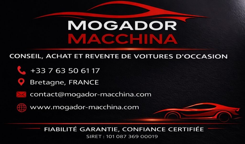« Parce que votre temps est précieux et votre exigence légitime, MOGADOR MACCHINA opère une sélection drastique au cœur du marché de l’occasion. Nous ne retenons que l’élite : des véhicules à l’historique limpide, expertisés avec une rigueur absolue. Ici, l’achat et la revente deviennent une signature d’excellence, où chaque modèle est une promesse de fiabilité tenue, au prix le plus juste. »